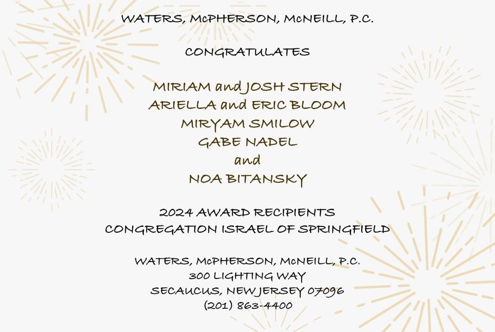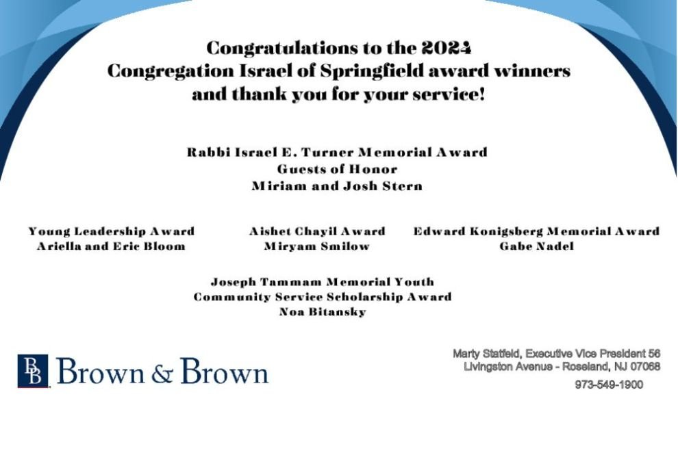 receiving this esteemed honor at Congregation Israel of Springfield!