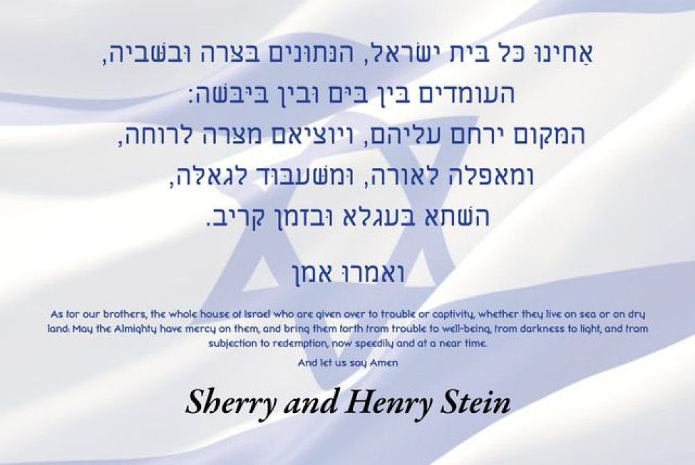 Congregation Israel of Springfield as well as the entire Springfield community and Klal Yisrael.