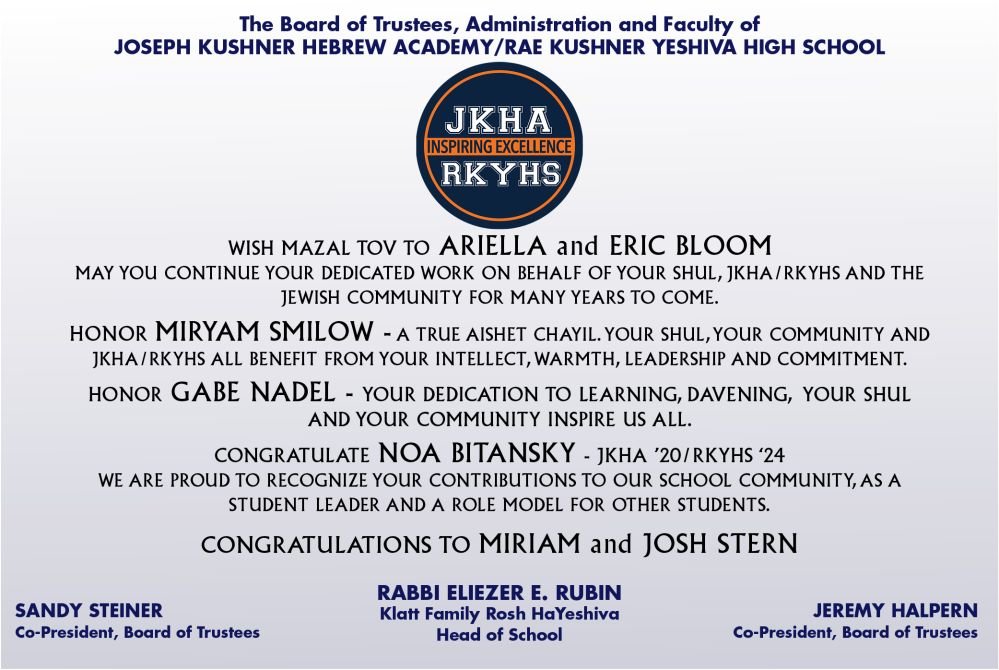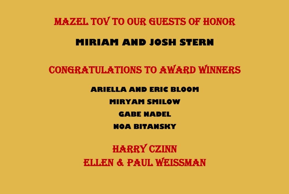 Miriam and Josh Stern, Ariella and Eric Bloom, Miryam Smilow, Gabe Nadel, and Noa Bitansky on receiving this much-deserved honor!