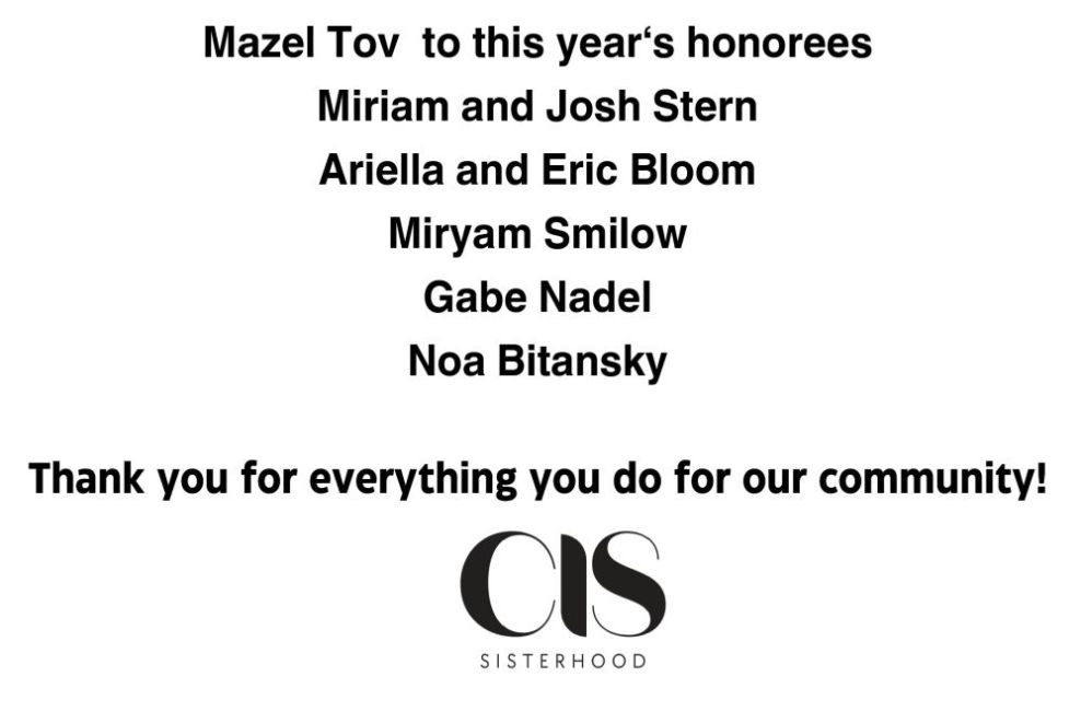 CIS is more than our shul, its our home. CIS' members are more than neighbors, they are our family. We thank each and every one of you for helping make CIS the special place it has become to us and so many others. May Hashem bless us to continue to grow and share smachot