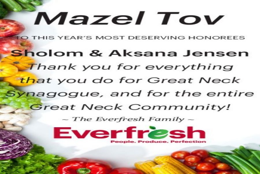 Mazel Tov to Rabbi Shalom and Aksana Jensen. How do you sum up over 30 years of friendship? We have celebrated countless simchas together and we have watched you grow into a centerpiece of the Great Neck community. While we are sad to see you go, we know how excited you are to make aliya and to show the Purim videos to thousands of Israelis along the way. Thank you for all that you have done for us and for our children who have benefitted from your tireless efforts and unlimited energy. We wish you good health and happiness as you embark on this new phase in your lives. Please remember all of the great times that we shared and stay in touch.