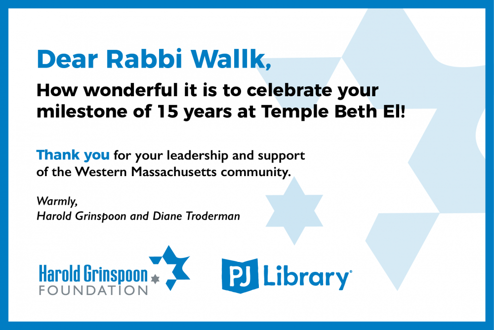 with her 15 years of dedication and commitment to Temple Beth El and the greater Jewish community in Springfield.