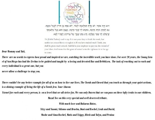 Rabbi and Mrs. Hollander, in your quiet, understated way,