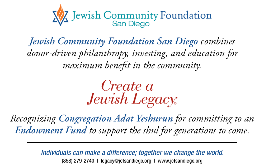 As we look ahead, I am filled with optimism and excitement for what we at Adat Yeshurun can achieve. Thank you once again for your unwavering support. May we continue to grow and thrive as a community, united in our shared values and traditions.