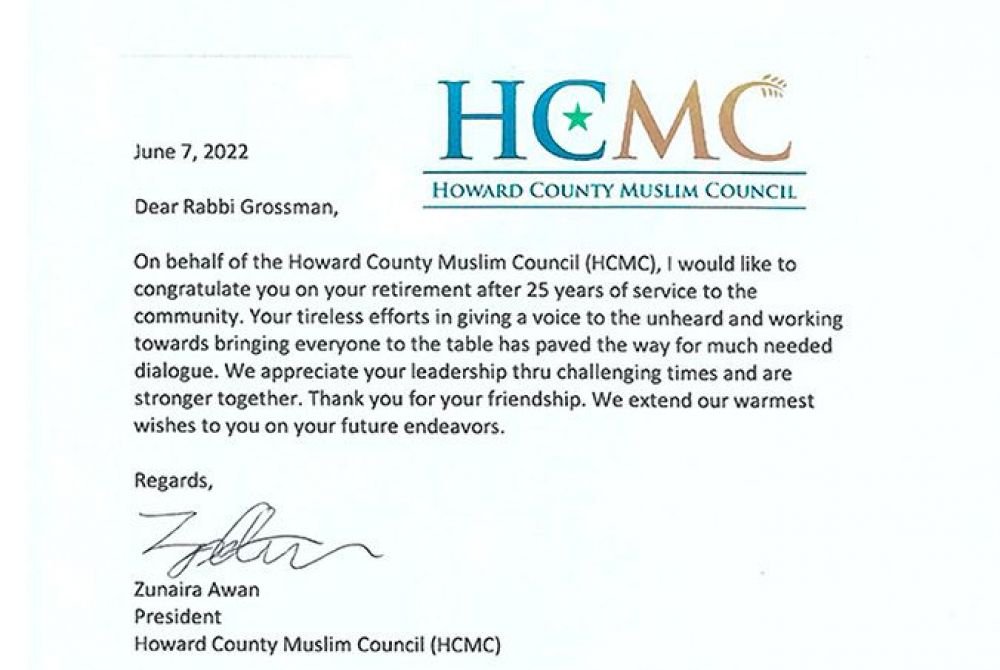 Todah Rabbah to our colleague, teacher, & friend. The Howard County Board of Rabbis