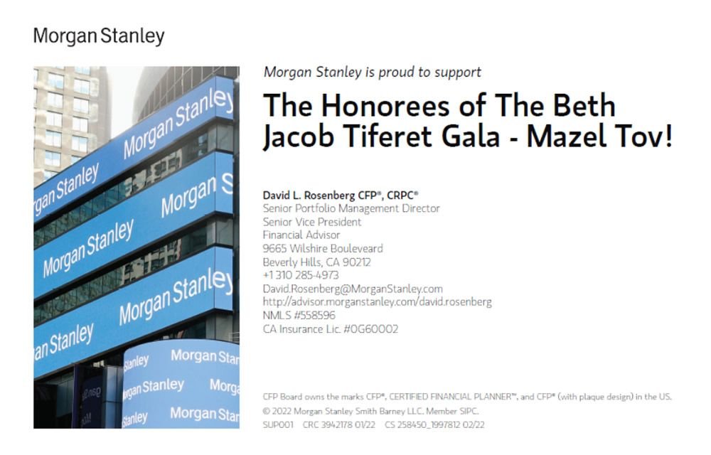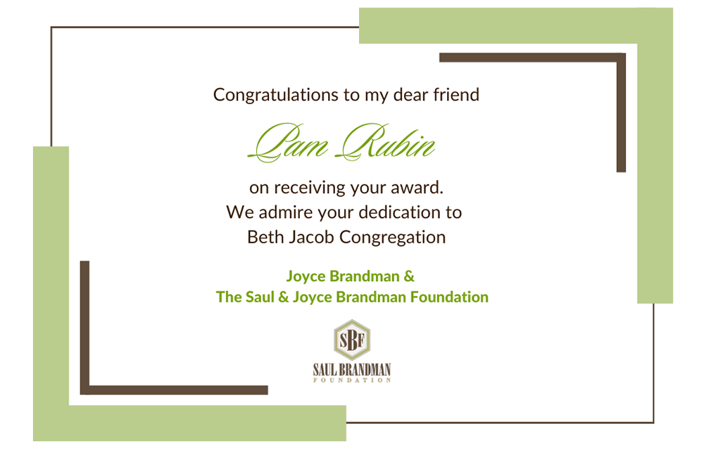 "We're proud to be Beth Jacob members" Our appreciation to Rabbi Topp, Rabbi Posy, Rabbi Tombosky, Rabbi Broner, Chazzan Wollheim, Executive Director Robyn Lewis, our dear friend President Jon Stern, the staff and each and every volunteer.