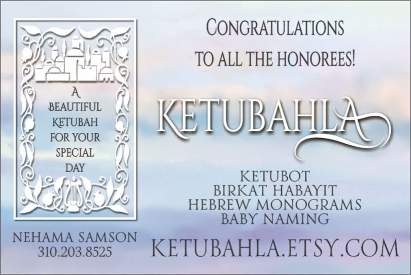 We wish all the honorees a hearty Mazal Tov