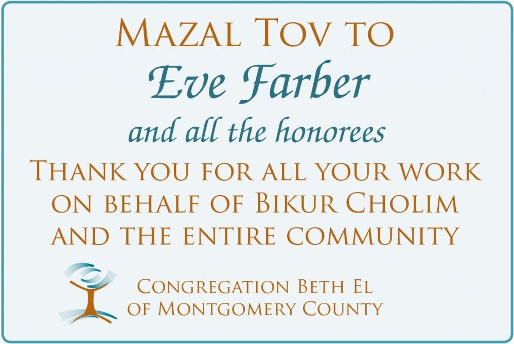 For the honor bestowed upon you by Bikur Cholim of Greater Washington