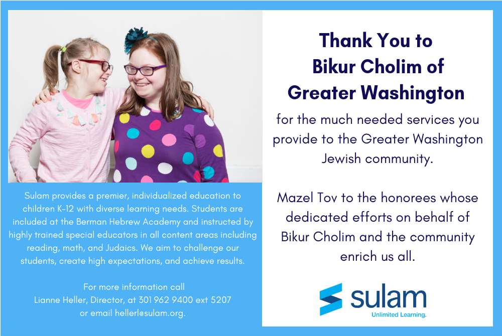 and the Bikur Cholim board for your dedication to serving those who need the care and services that you uniquely provide.