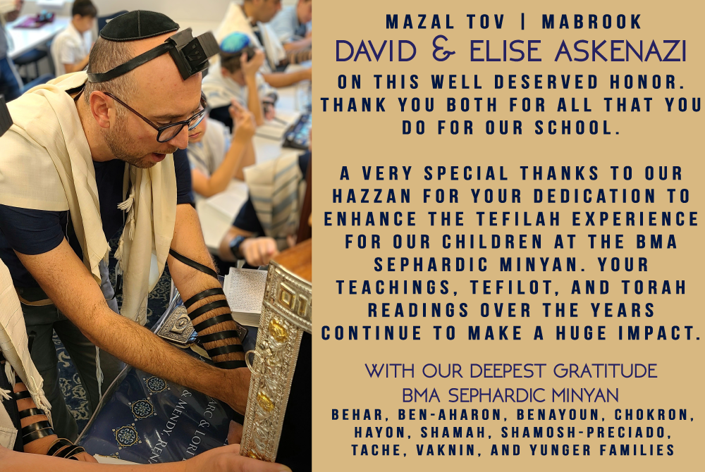 Thank you to all the BMA faculty and staff for all you do. Aliza & Tzvi Aronin