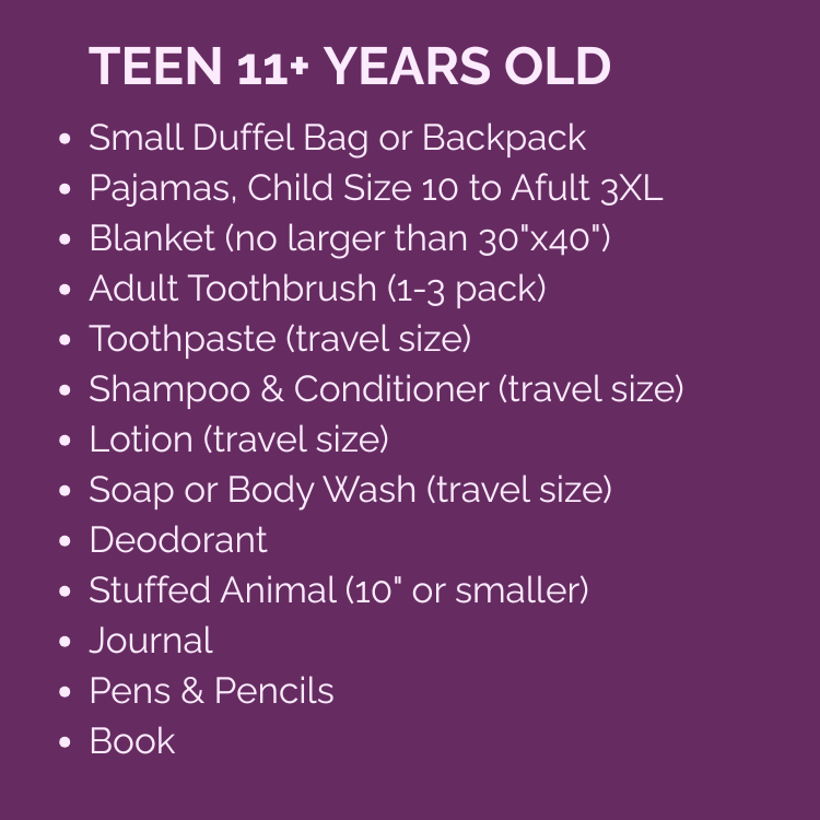 These are the lists of requested essential and comfort items for the Comfort Cases backpacks.