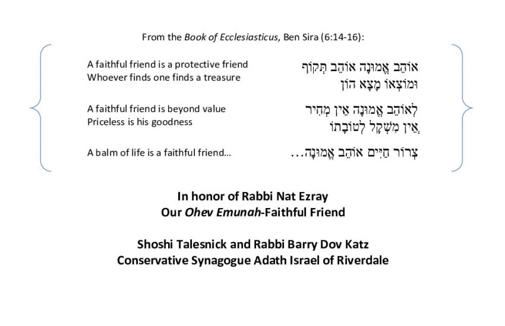 Rabbi Ezray, for your wisdom and leadership! Beth and Neil Blecherman