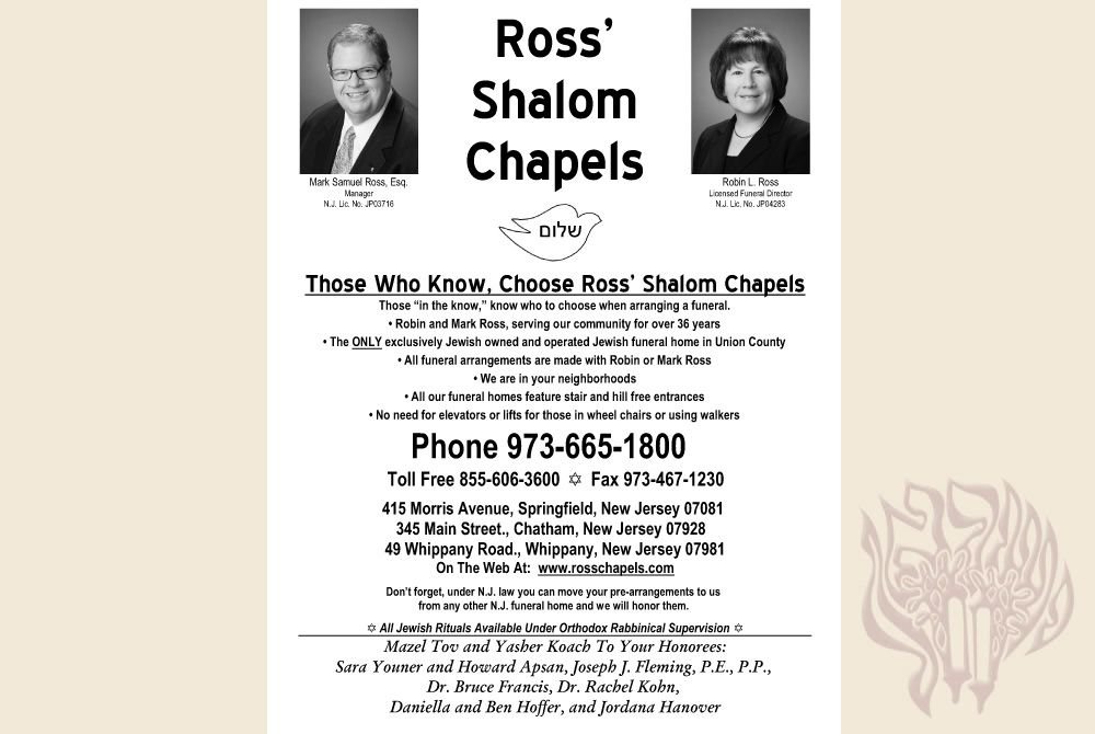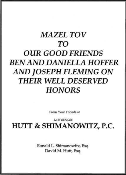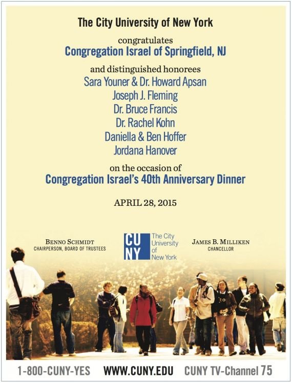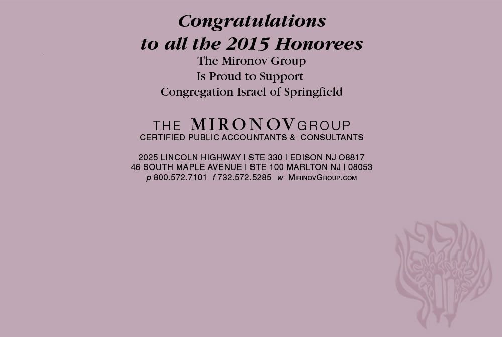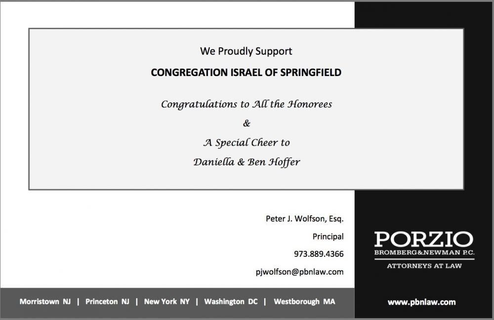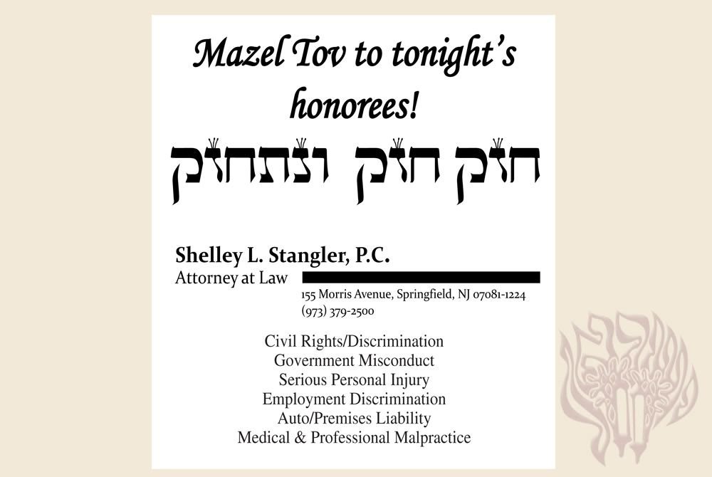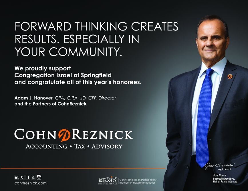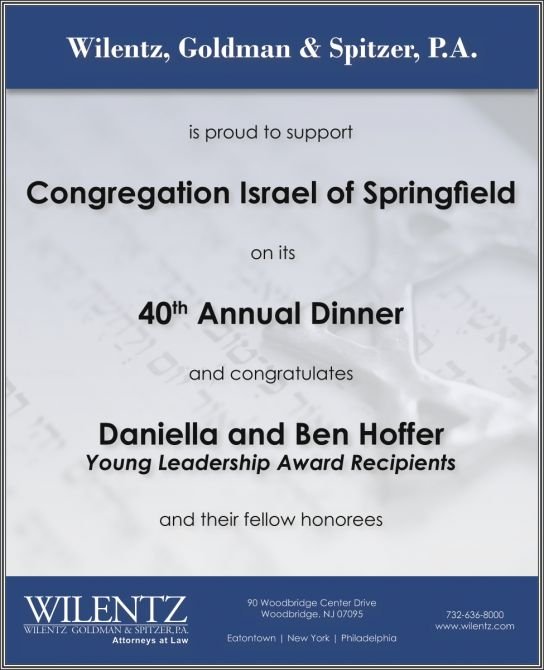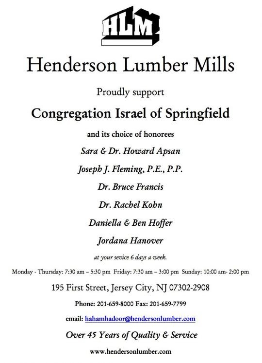 We admire and respect your dedication to ensuring the success of this year’s gala dinner. May you continue to be an inspiration to the community at large and to Congregation Israel of Springfield.