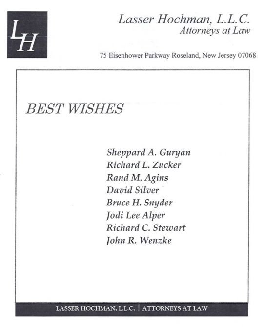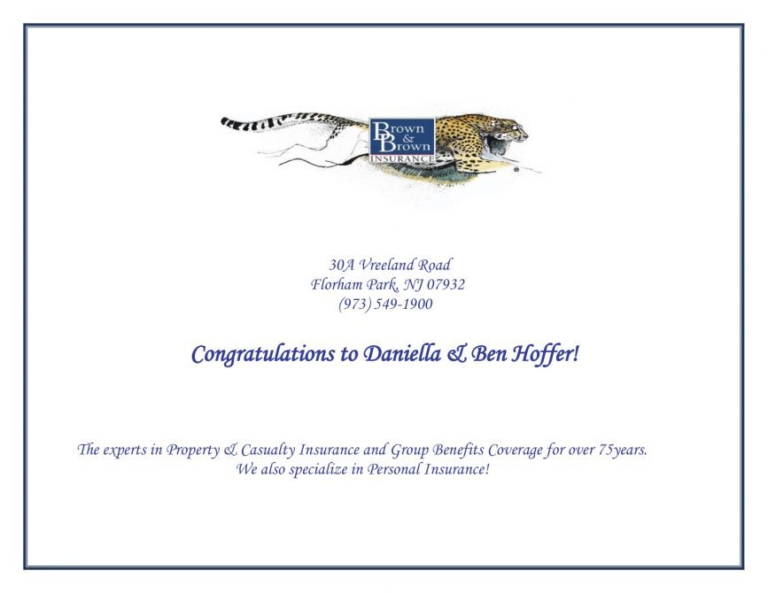 Mazal Tov Daniella and Benji We are so proud of you! With Love, Aunt Cookie and Uncle Irwin Janet S. Hoffer, MSW, LCSW Walter Bauman Jewelers