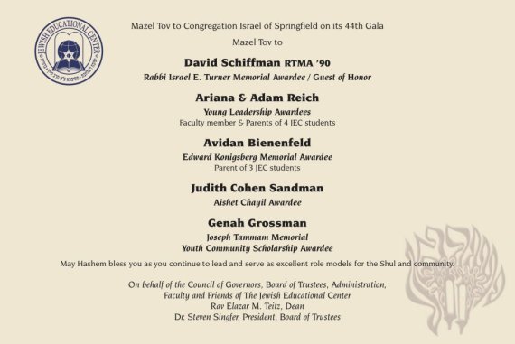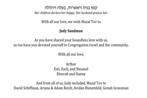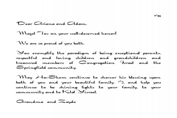 MAZAL TOV AND BEST WISHES TO THE HONOREES