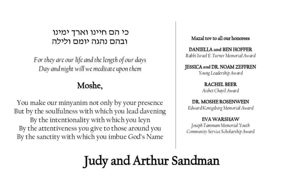 on this well-deserved honor from your synagogue.