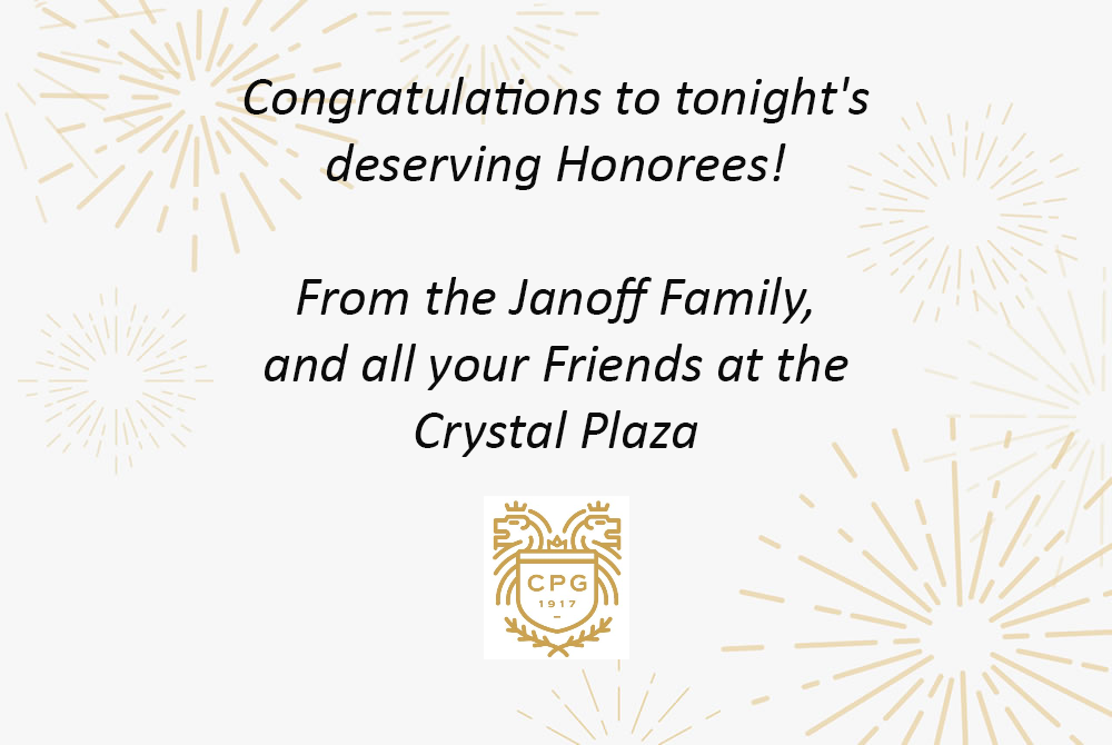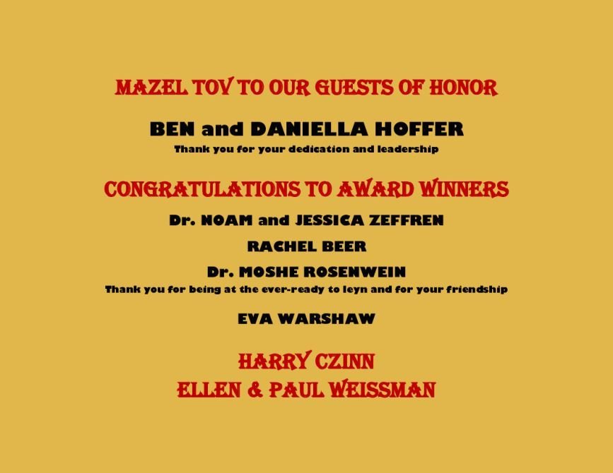 Mazel Tov to all of the Honorees, the Dinner Committee, and