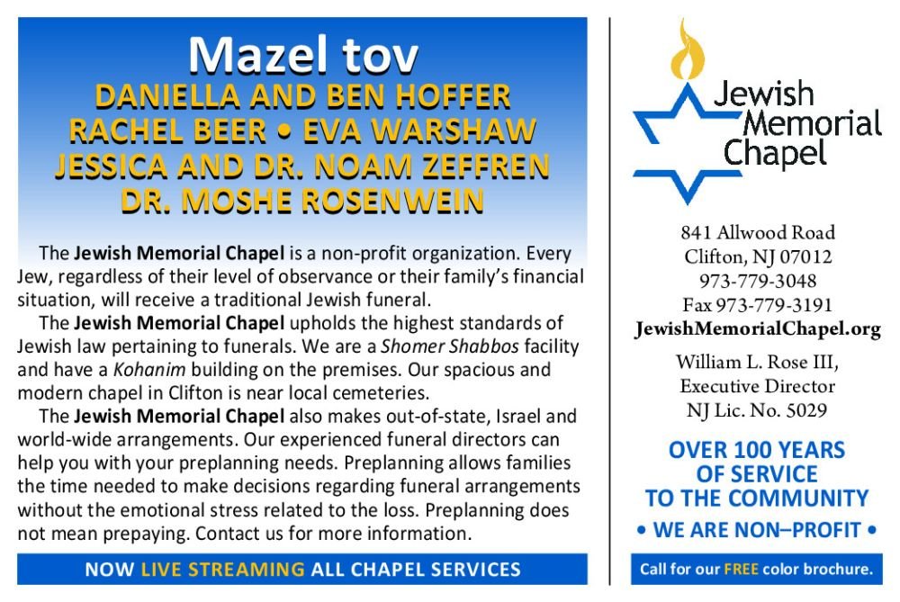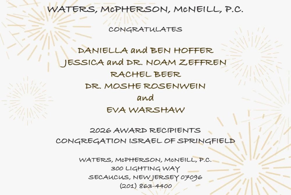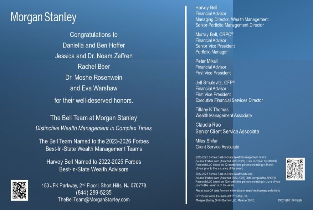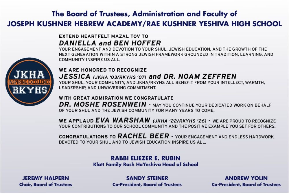 We are deeply grateful to be part of such a special community and to celebrate this meaningful occasion together. May Hashem bless us all to share many more simchas in good health and happiness.