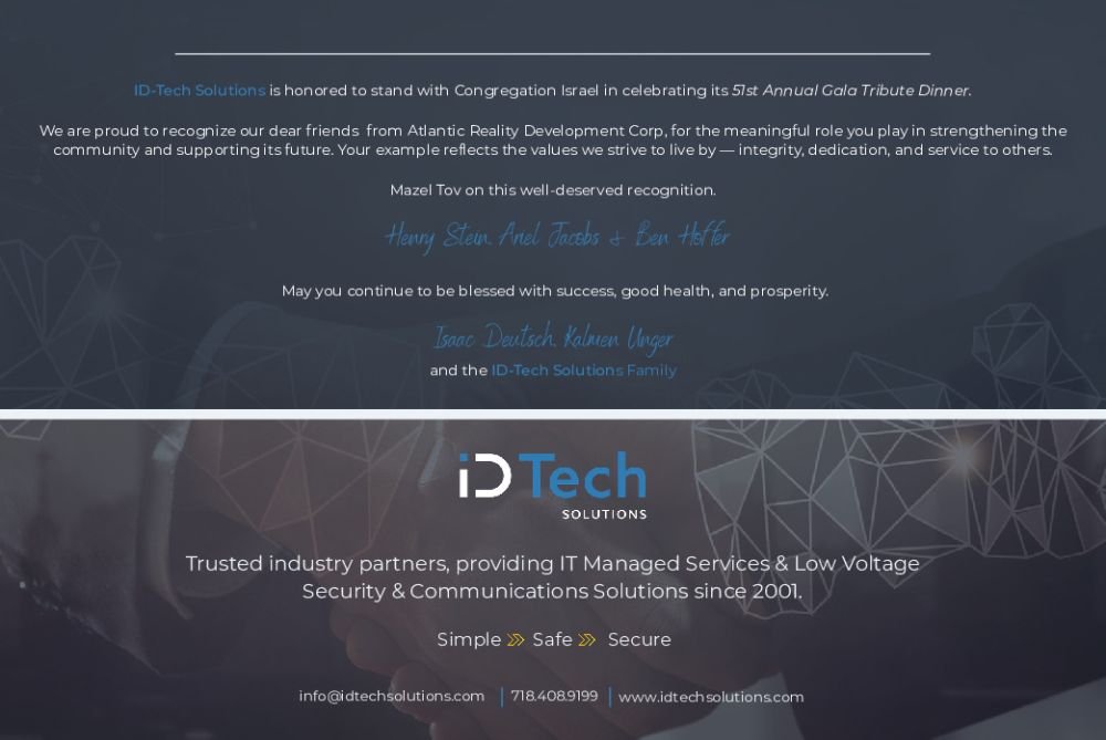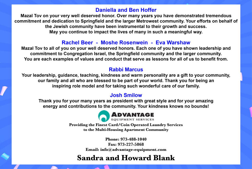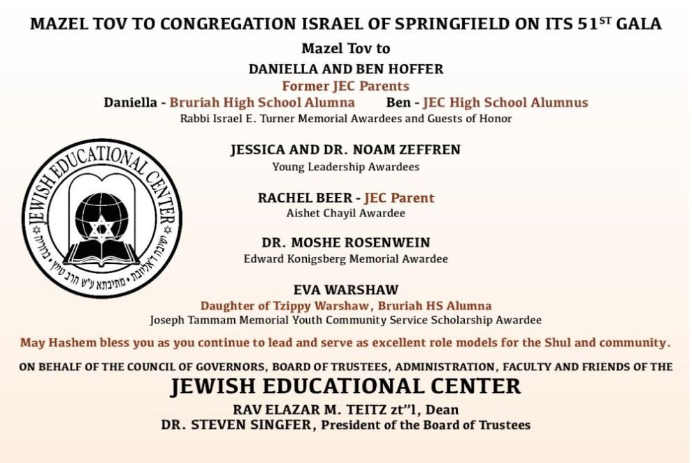 Best to Congregation Israel on its 51st Annual Gala Dinner