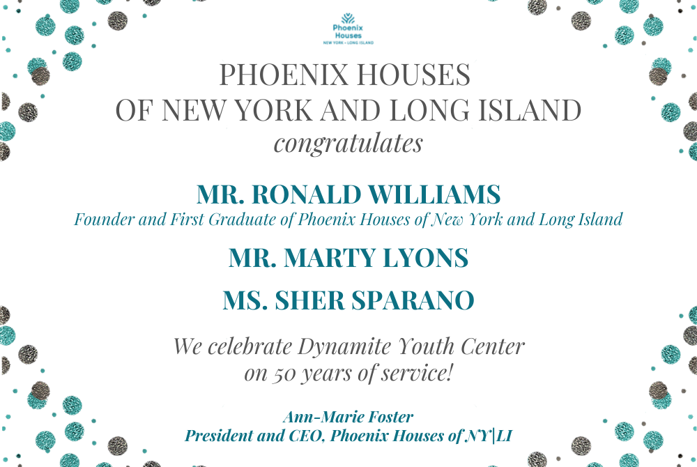Fifty years of helping families struggling with addiction - sons and daughters caught in the vicious cycle of drug abuse. From our beginning, we believed in the resiliency of the human spirit; the power of families bonding together to find a better way - a fellowship in good times and in bad times. It's amazing to reflect on the growth from an abandoned discotheque starting in the late 1960's until today - fifty-two years later helping hundreds upon hundreds of families finding recovery. So many young people are now back on track to accomplish whatever their hopes and dreams may be. I am many times humbled by the courage and tenacity that it takes in conquering the challenges that life presents. We are here now to celebrate together. Thank you, thank you to all our supporters throughout the years and to all of you here tonight. You help make what sometimes seems impossible possible. God bless, Bill Dynamite Youth Center