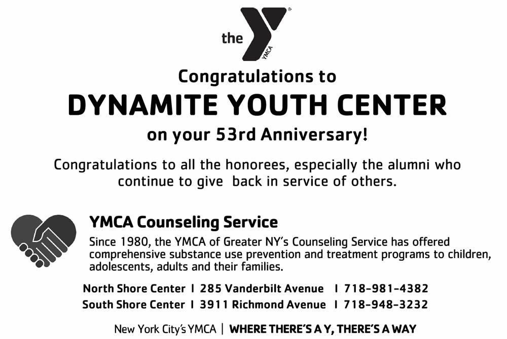 Congratulations to DYC! Mittelman's Food Center 1823 Coney Island Avenue, Brooklyn, NY 11230 718-375-7729 Congratulations to Dynamite Youth Center for 53 years of saving lives! Loconsolo Paints 718-322-1111 / www. Loconsolo. com Congratulations DYC! Dominick Plumbing & Heating P.O. Box 693, Rock Hill, NY 12775 845-866-5039 Quarter Page