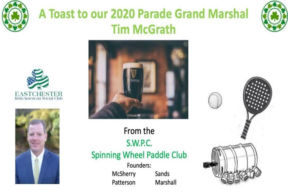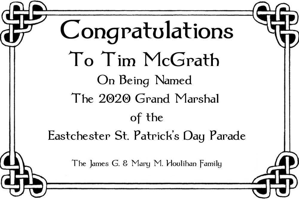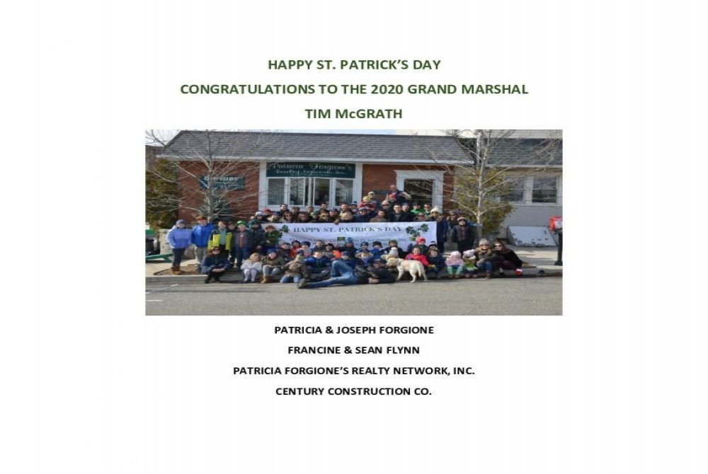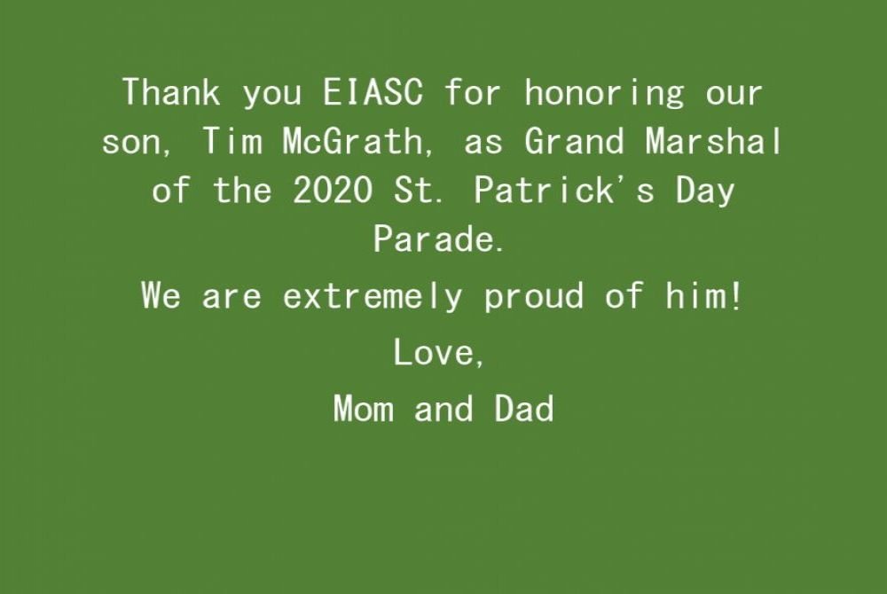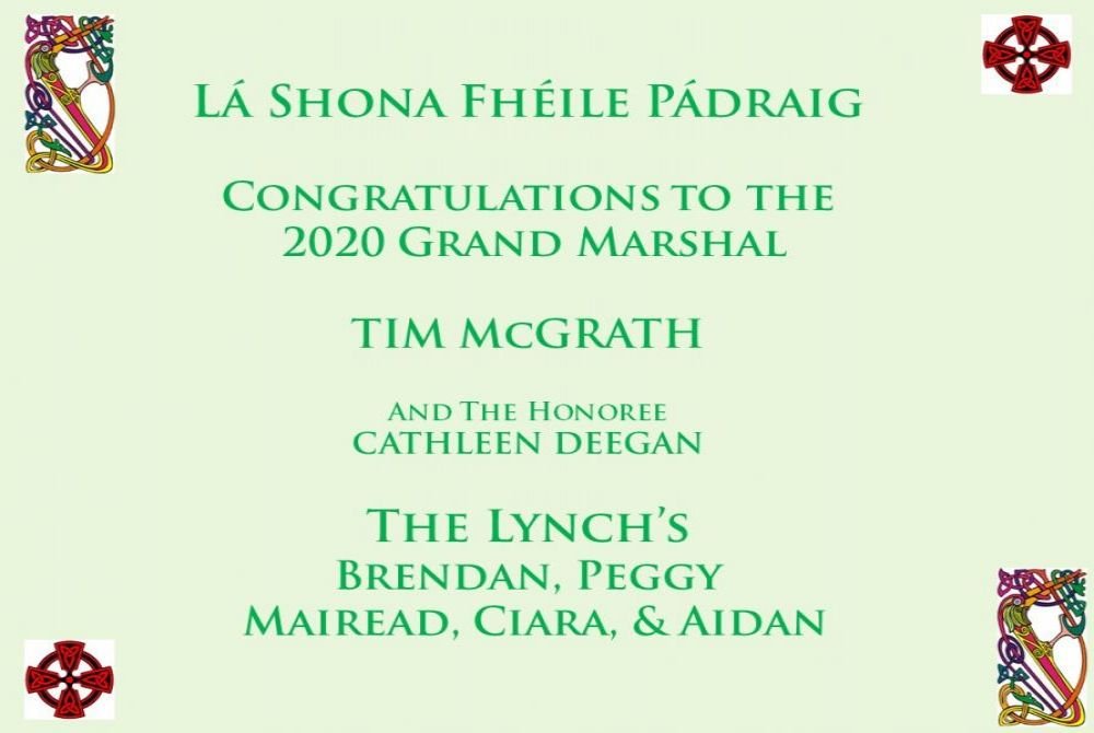 on their 2020 St. Patrick's Day Parade!! Congratulations to the Grand Marshal Tim McGrath Special Congratulations to our Dear Friend