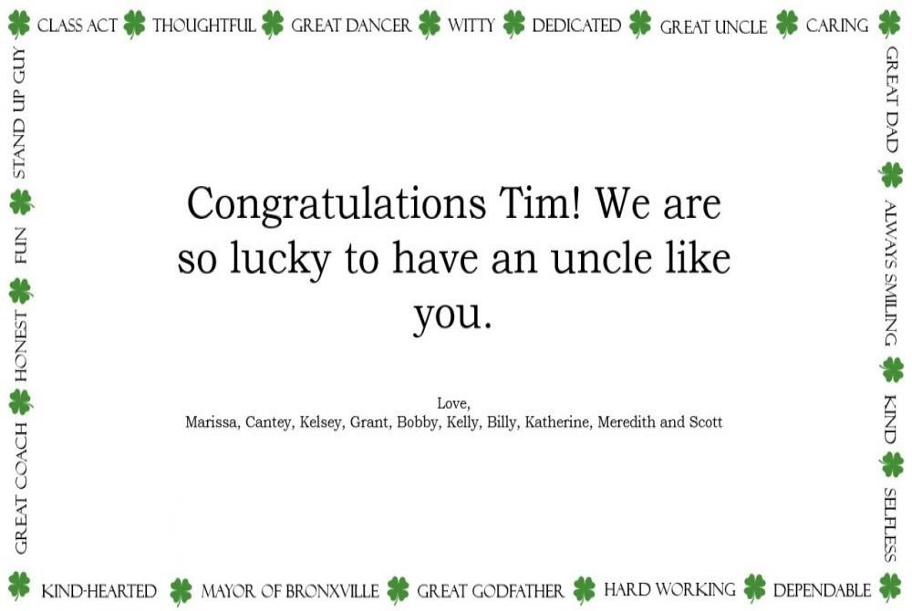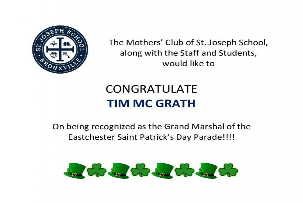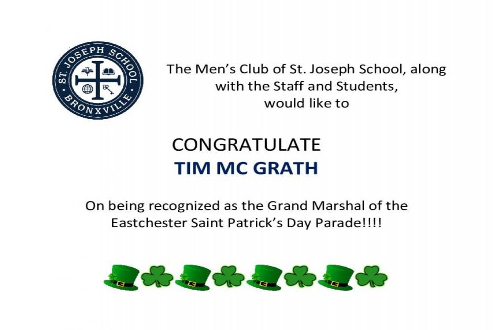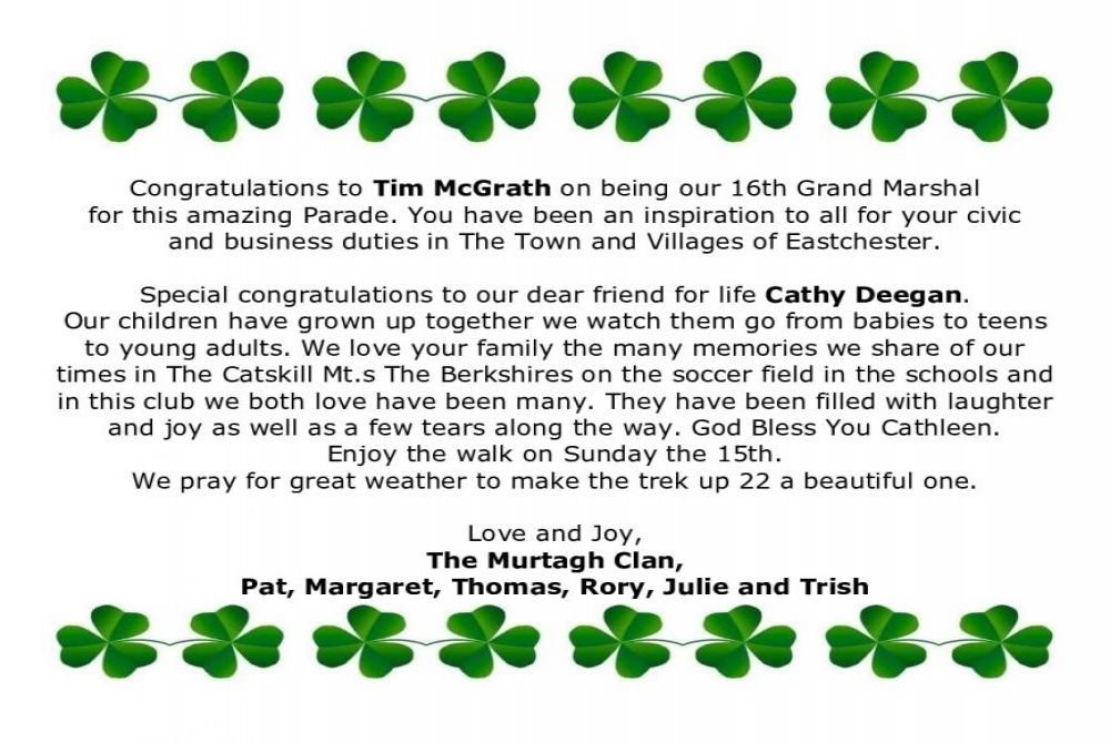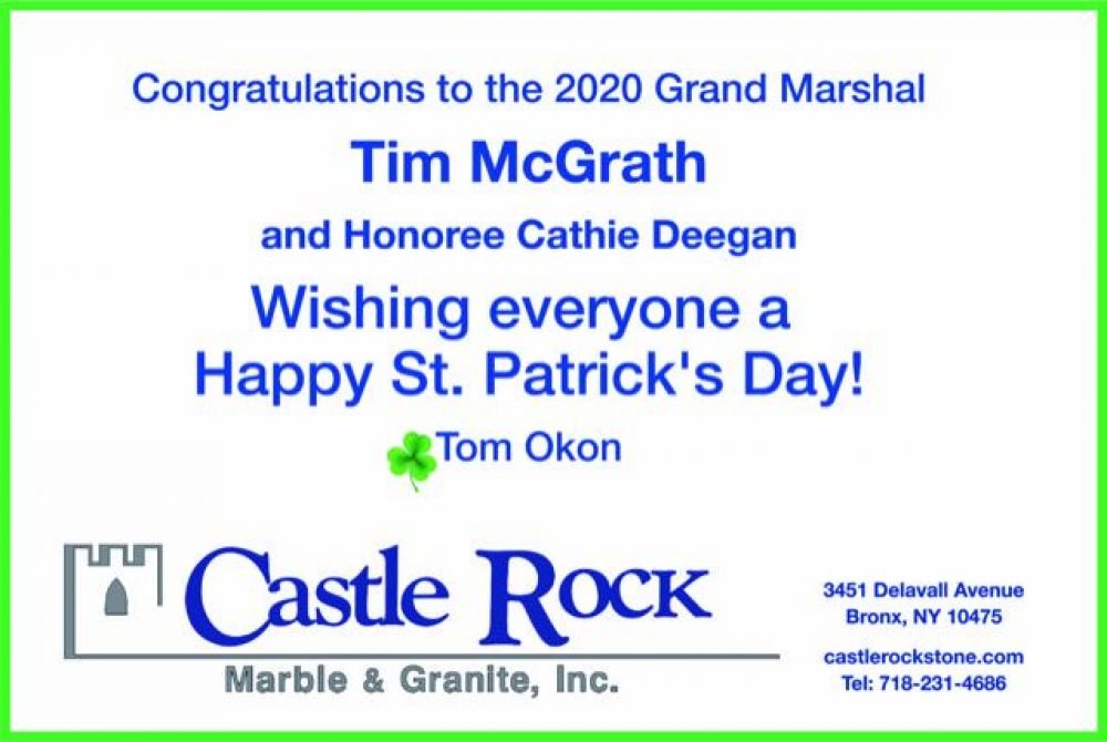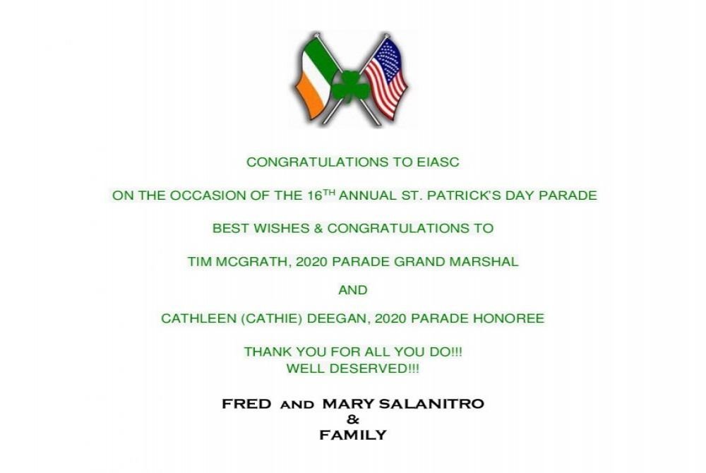 on their 2020 St. Patrick's Day Parade!! Congratulations to the Grand Marshal Tim McGrath Special Congratulations to our Dear Friend