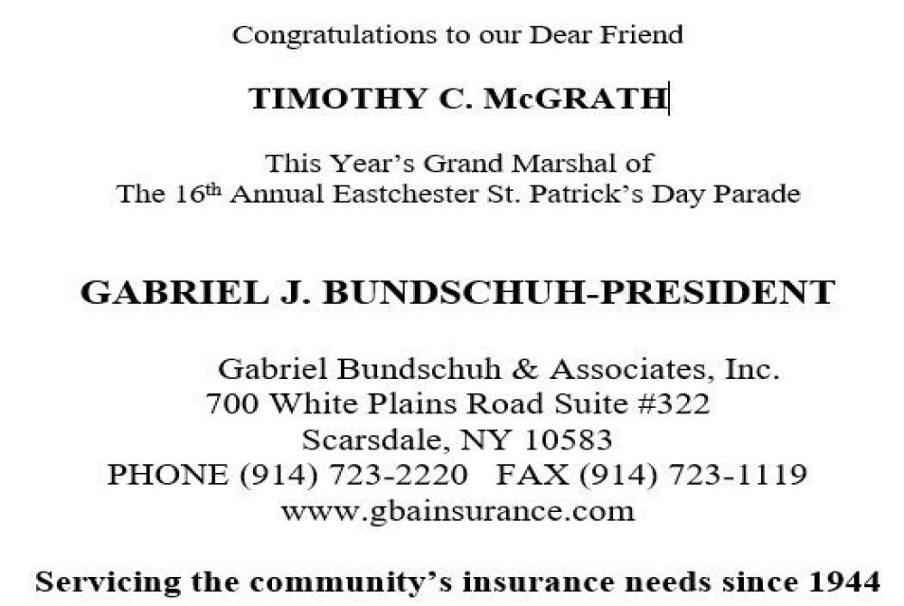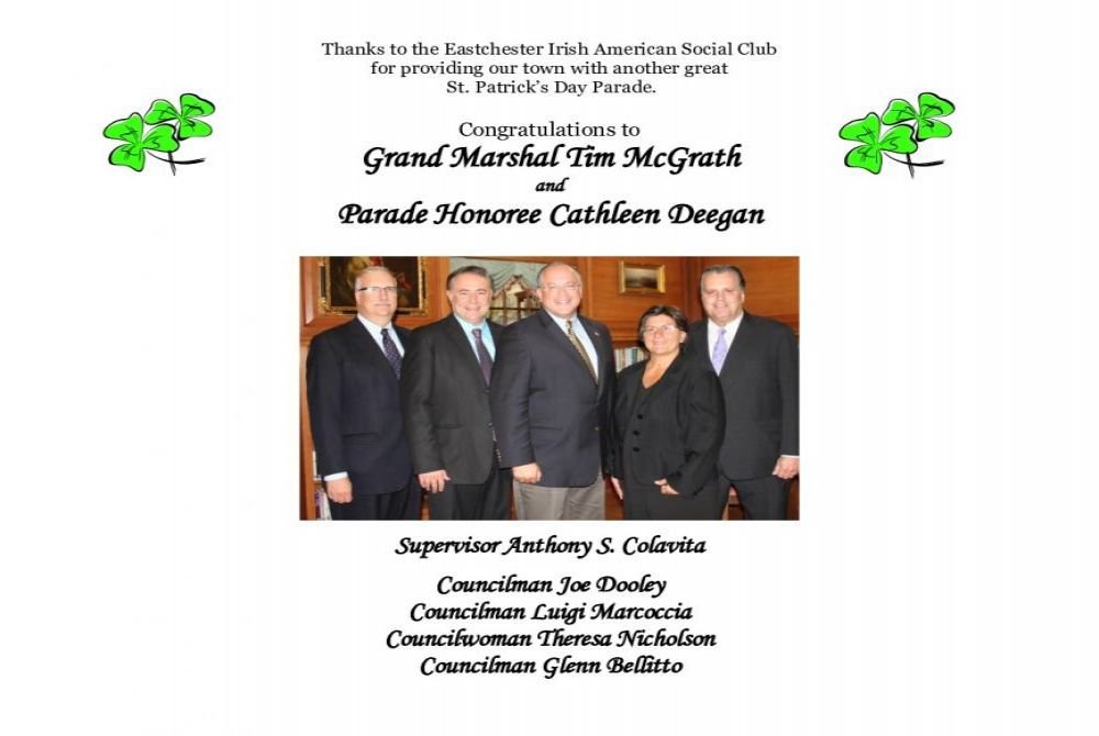 resident of Bronxville, being Grand Marshal in the Eastchester St. Patrick's Parade