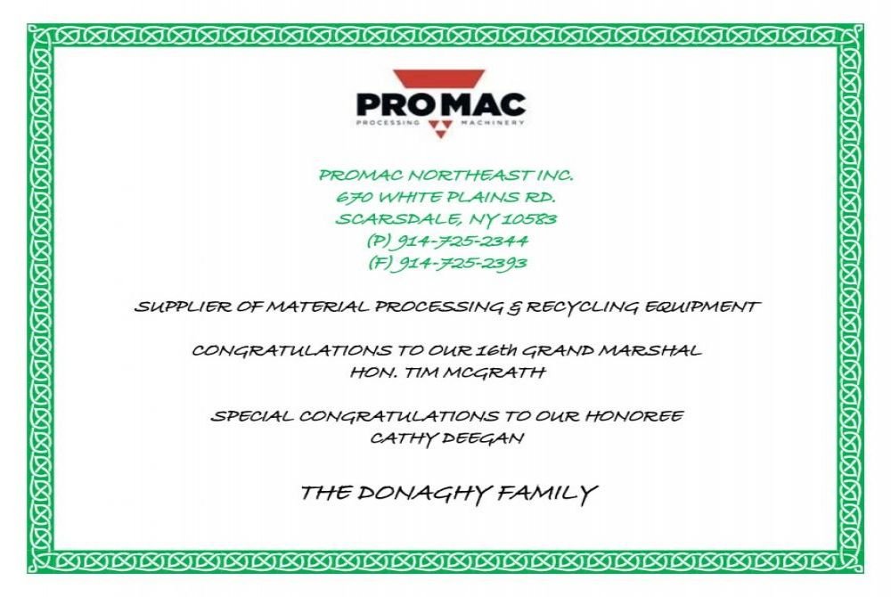 of 16th Annual Eastchester St. Patrick's Parade -Parade Sash Gala