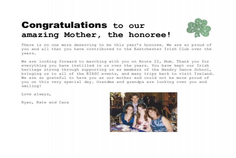 for the Eastchester Irish American Social Club's (EIASC) 16th Annual Eastchester