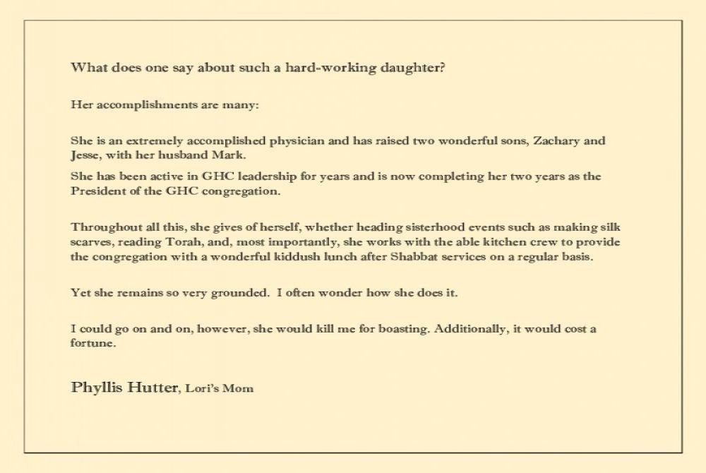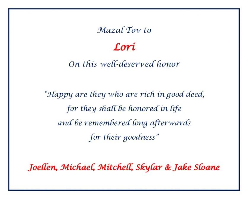 Mazal Tov, Lori!