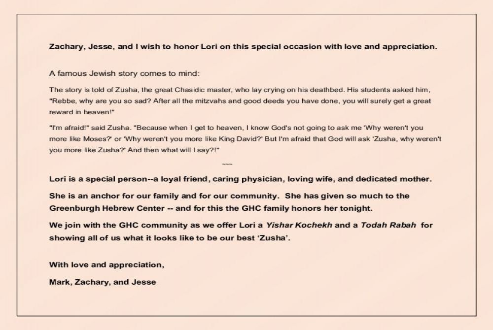 PRESIDENT OF GREENBURGH HEBREW CENTER