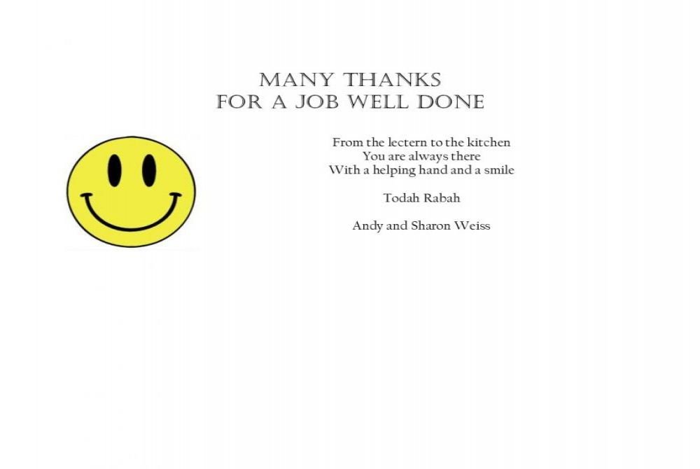 Yasher Koach on a job well done!