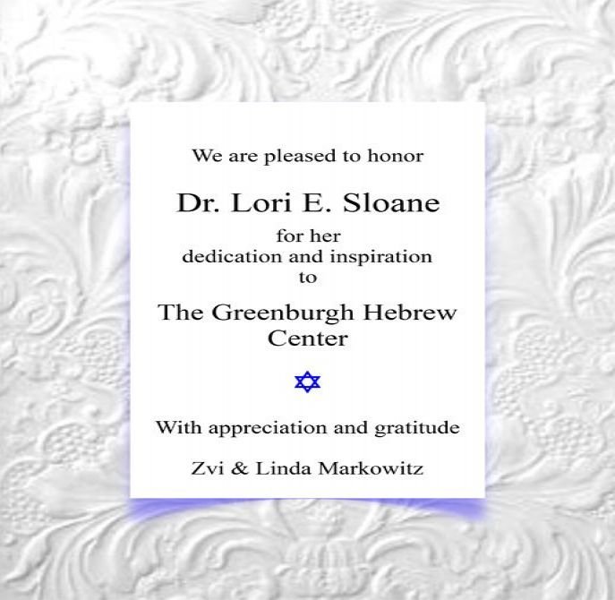 TO THE GREENBURGH HEBREW CENTER