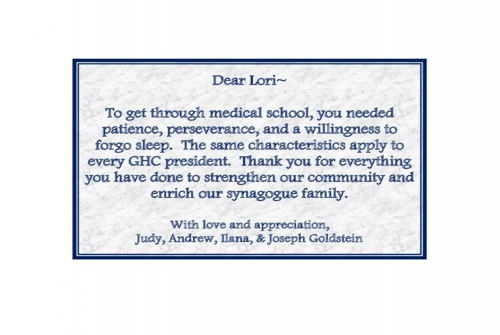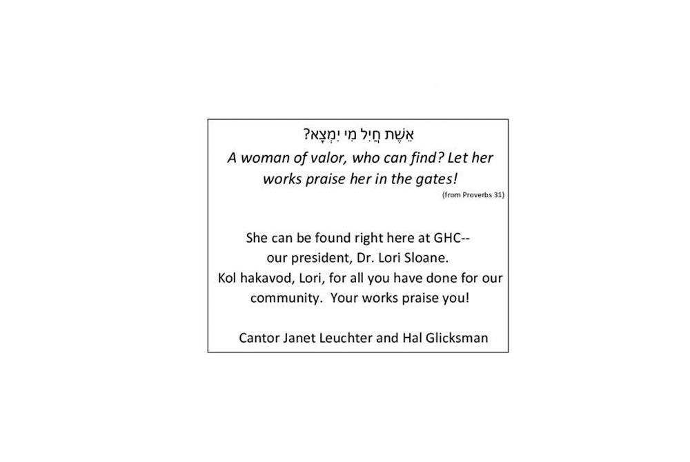 for her leadership, dedication and commitment to GHC. Her passion and love for GHC have inspired us all.