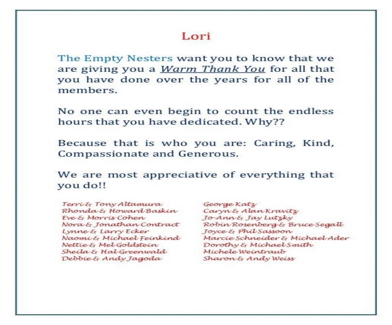 THANK YOU LORI
