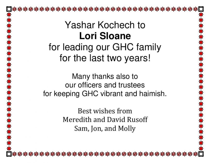 Thank you for your wonderful service as President of GHC.