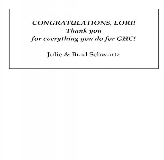 CONGRATULATIONS, LORI