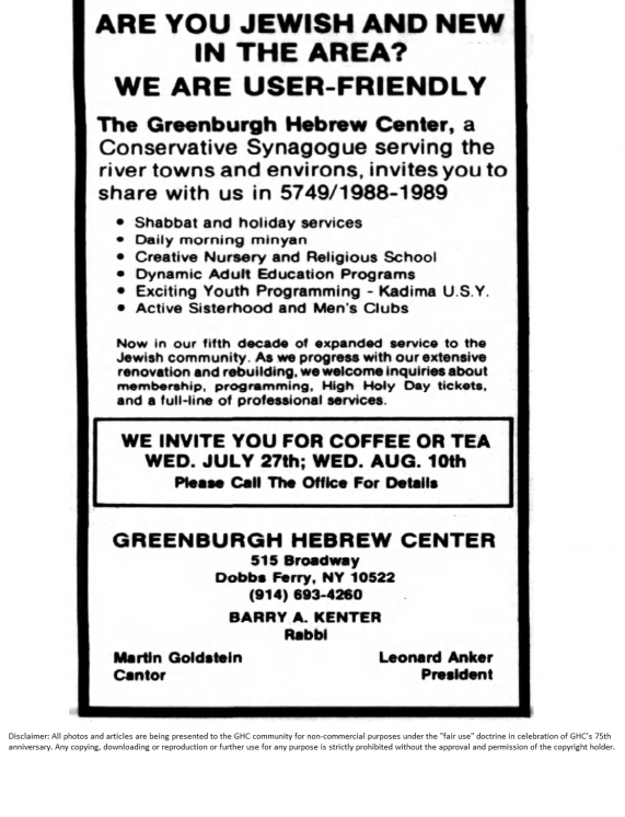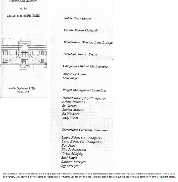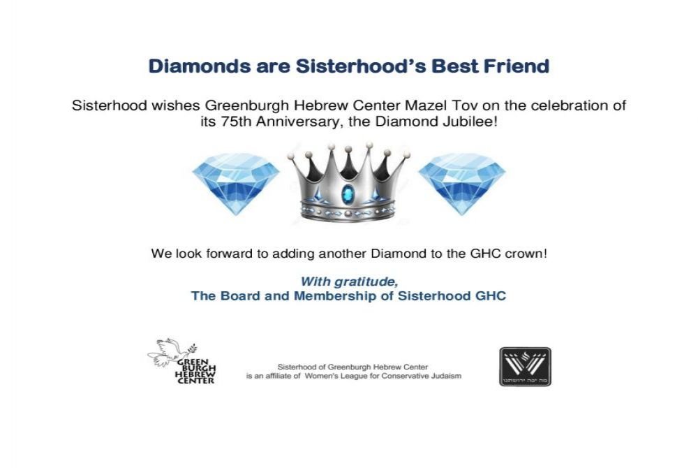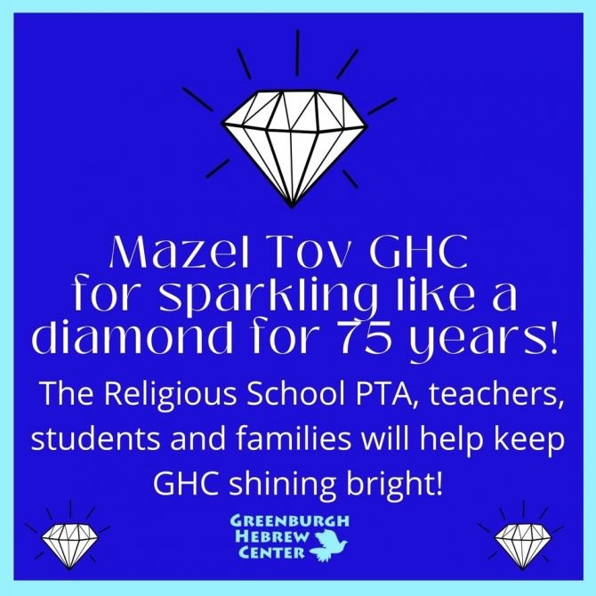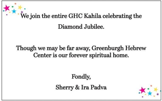 GREENBURGH HEBREW CENTER celebrate its Diamond Jubilee Anniversary. Thanks to Rabbi Stein, Cantor May