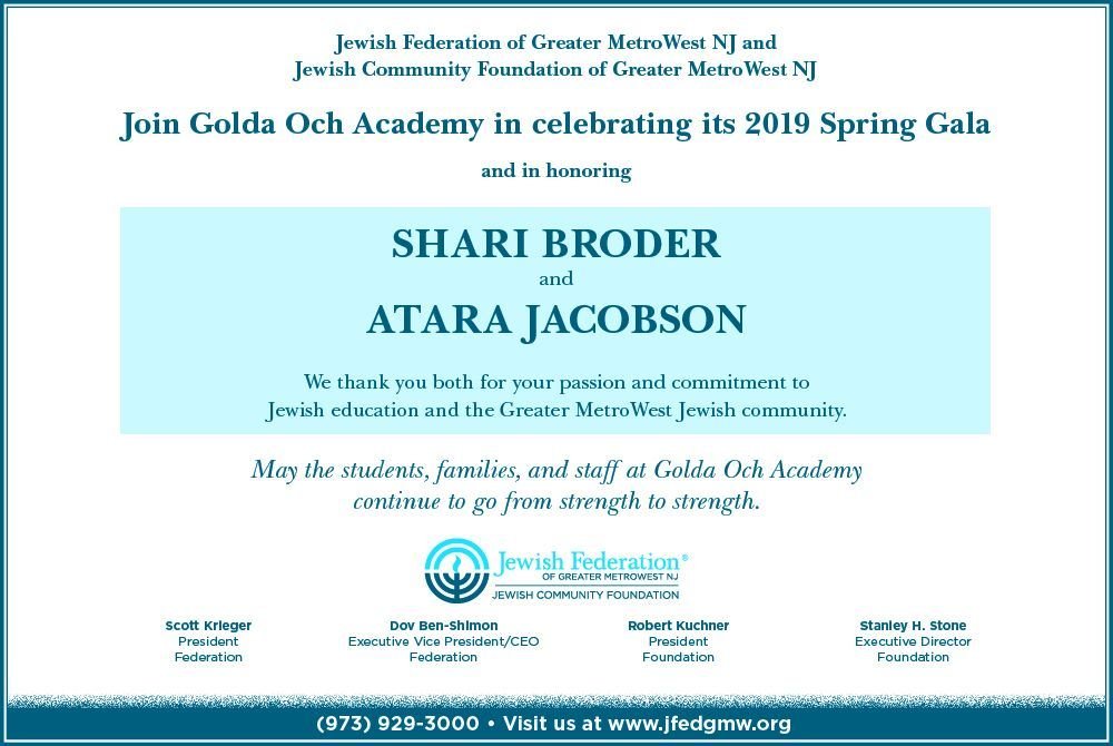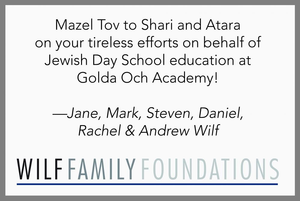Shari and Atara, for their tireless efforts in support of Jewish Day school education at Golda Och Academy!