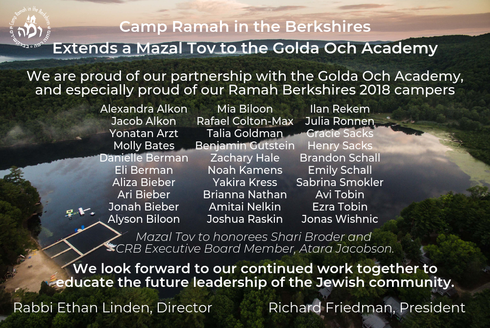 The Board of Trustees of Golda Och Academy acknowledges with gratitude the support of