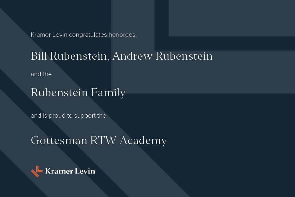 Bill Rubenstein, Andrew Rubenstein, and the Rubenstein Family. Thank you for your generous support of Gottesman RTW Academy.