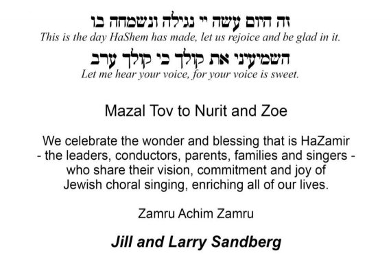 for making HaZamir an inspiring musical experience.