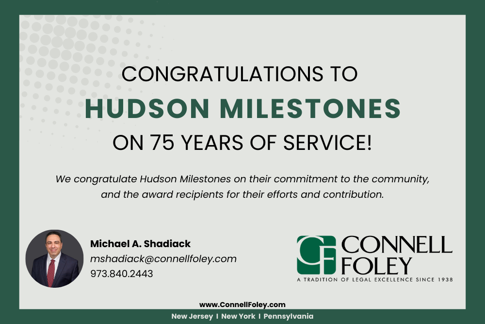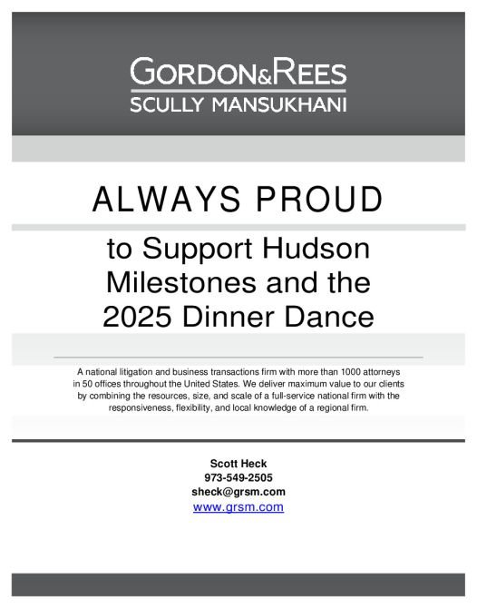 We thank you for your dedicated service and commitment to Hudson Milestones and wish you continued success and a bright future for the organization.