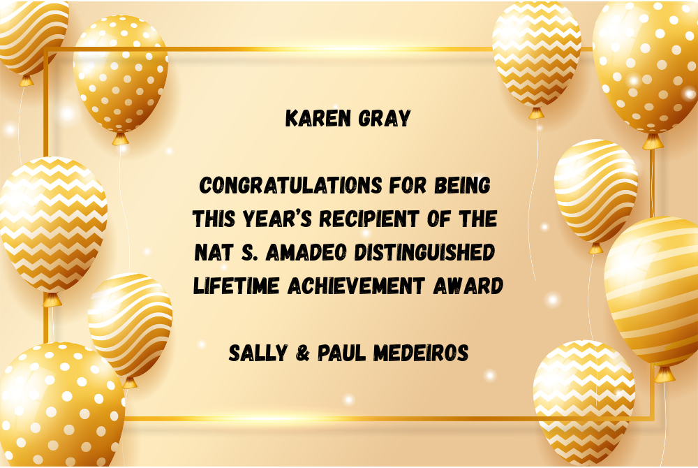 The Nat S. Amadeo Distinguished Lifetime Achievement Award honors that rare individual who has over a prolonged period of years displayed outstanding and exemplary effort and commitment to people with intellectual/developmental disabilities from Hudson County. It is presented in memory of former Board Member, Nat Amadeo, Esq. This year's recipient is Karen Gray, Hudson Milestones Board of Directors' Secretary. Hudson Milestones