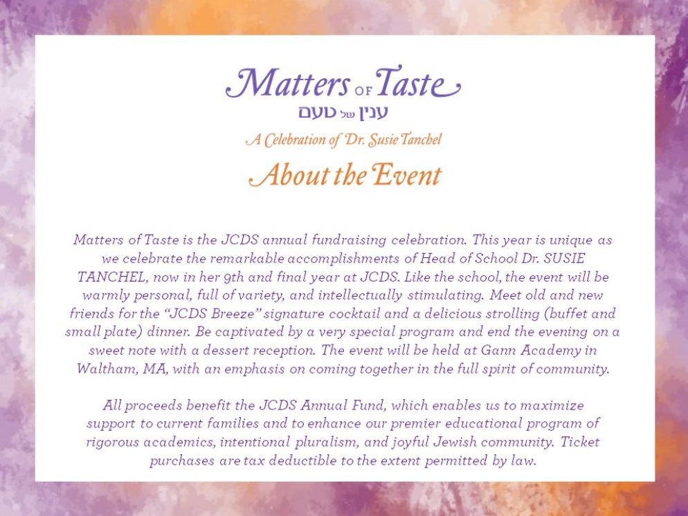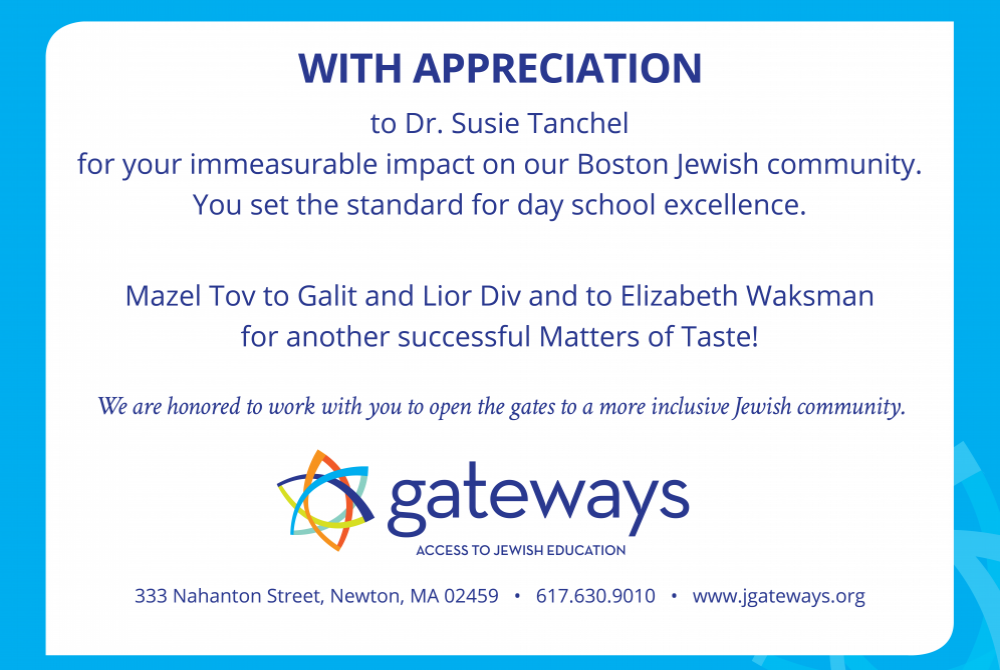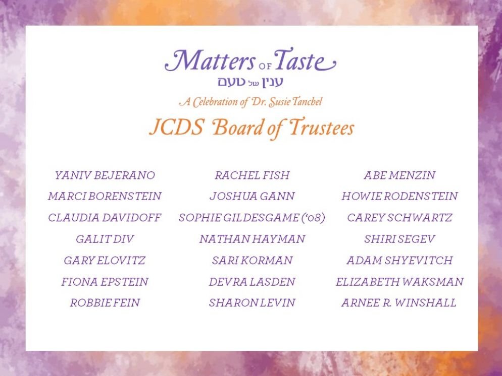 Mazal tov to Susie and JCDS for kindling the flame of lifelong learning and Jewish engagement Stephanie and Yair Listokin