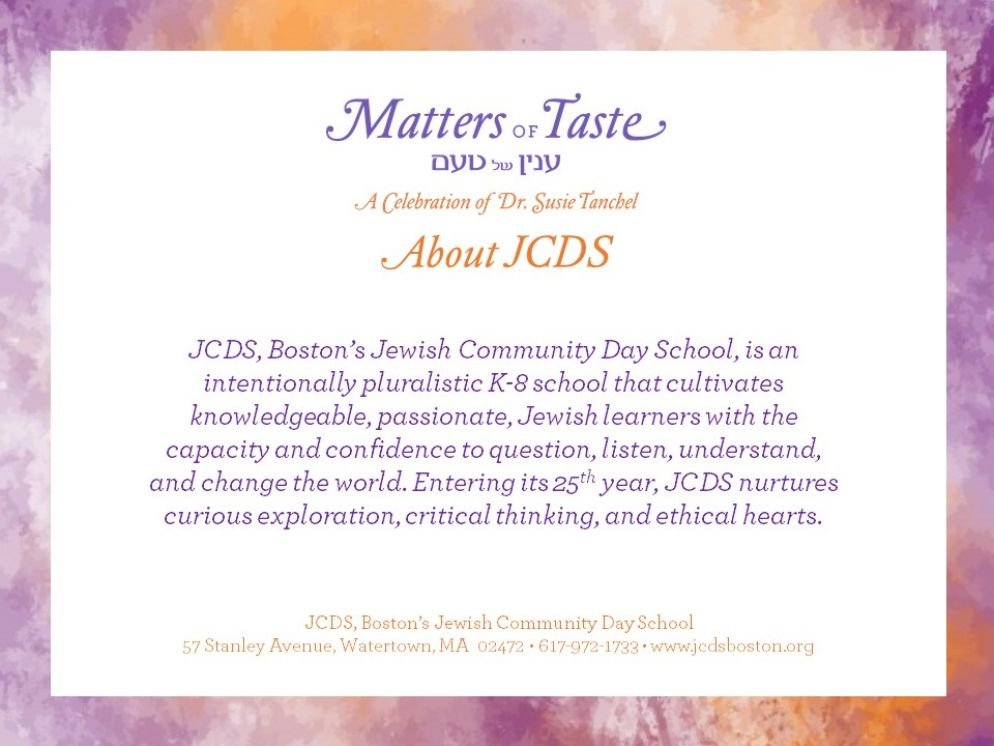 Over the course of my 17 years of involvement with JCDS, I have never wavered in my love for the education and the community. Thank you for all of your hard work in improving that which needed improvement, and keeping in place that which is sacred. You have left an indelible imprint on the school with your academic rigor, love of Jewish text, and joyful learning. You will be sorely missed, but knowing that you will remain as an educator in the Boston Jewish community softens the blow. I am grateful for your leadership and for your friendship. Kol hakavod, Sari Korman