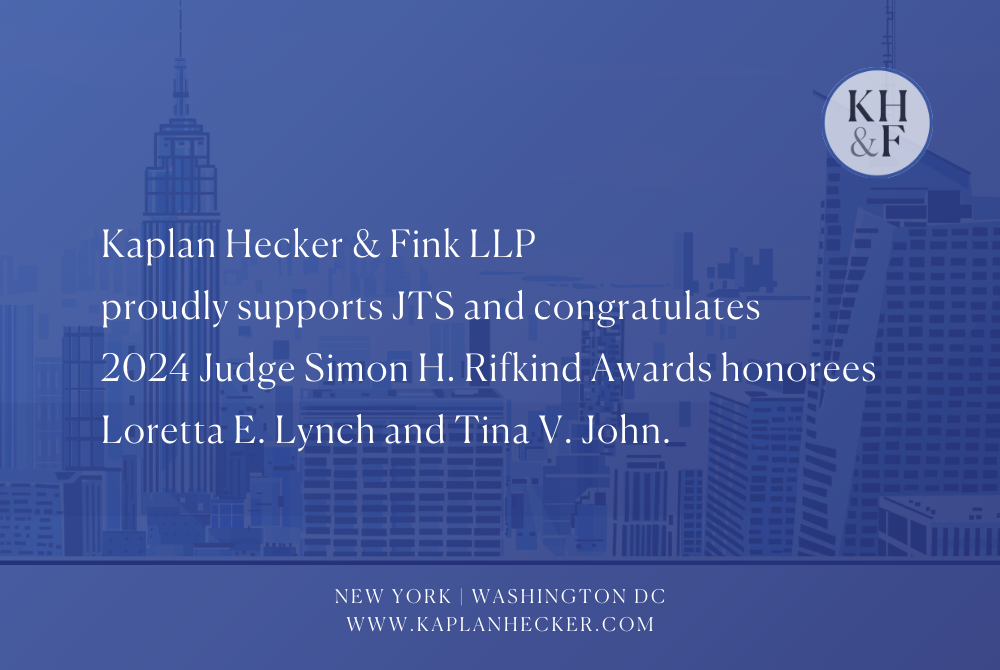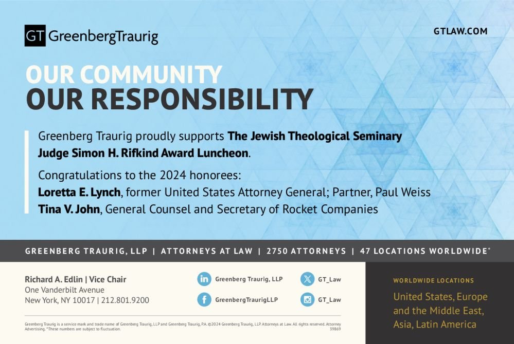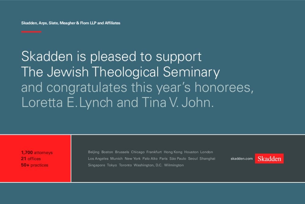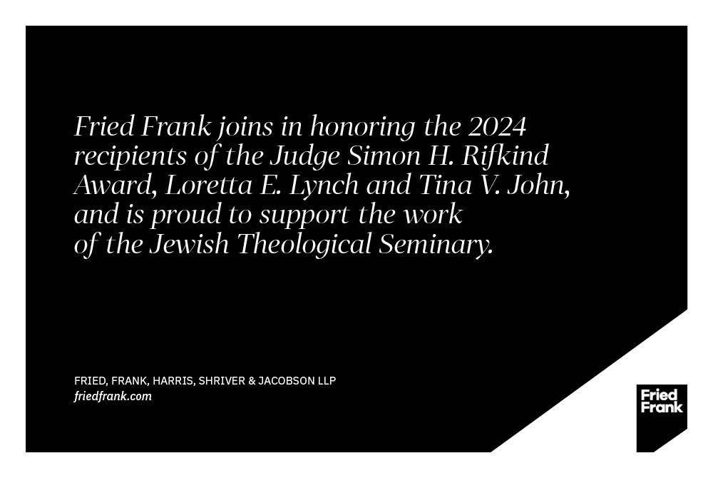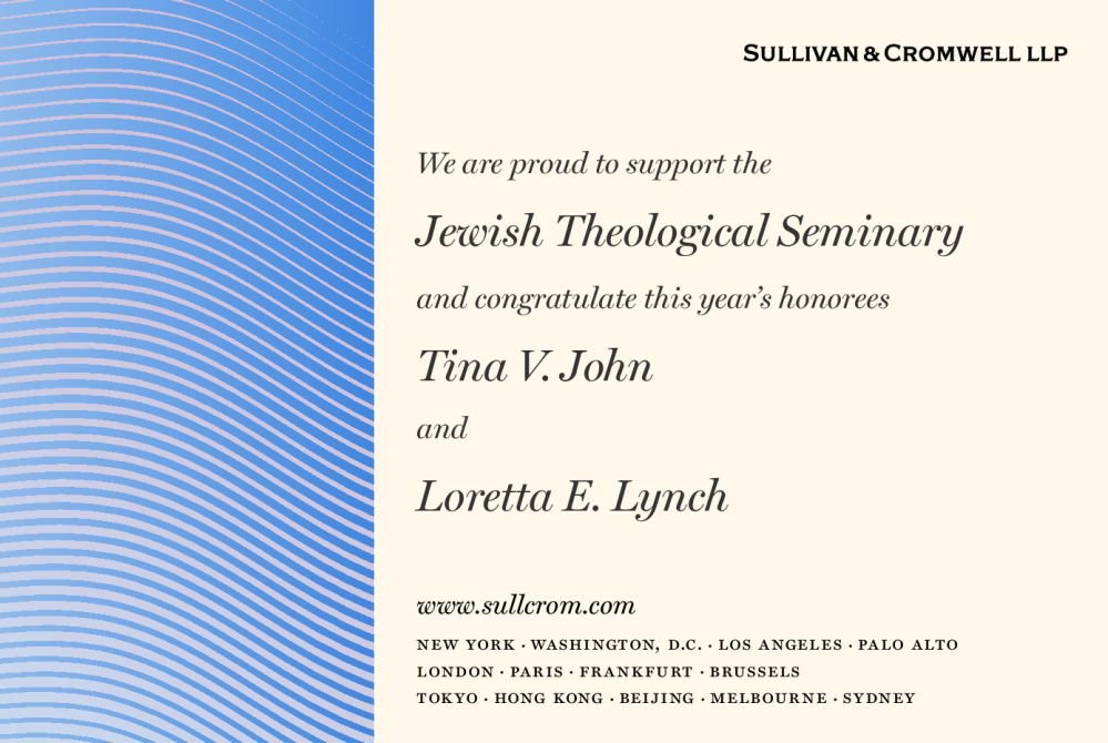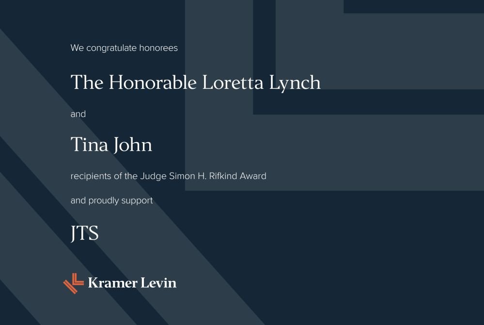 Loretta Lynch and Tina John. Thank you to the amazing faculty and staff of The Jewish Theological Seminary. Matthew Furman and Judy Hecker Furman