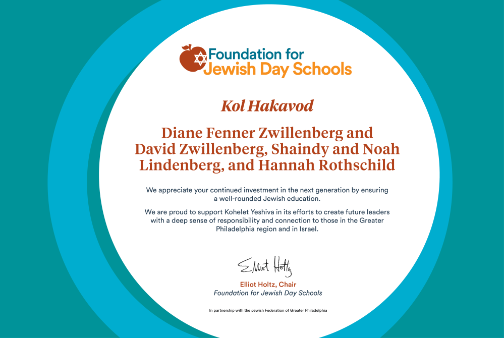 Thank you to the Kohelet Yeshiva administrators, faculty, and staff for your dedication to our school, our students, and our community. Nyer Family