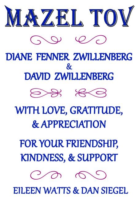 Mazel Tov Uncle David and Aunt Diane! Love, Renee, Judy & Michael Zwillenberg